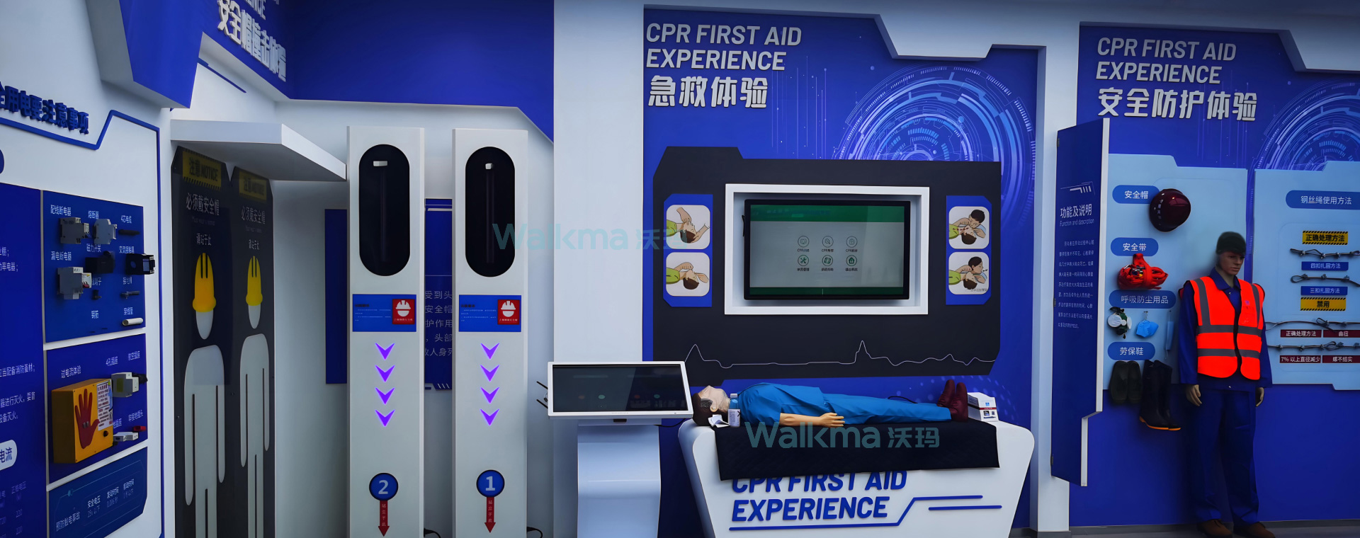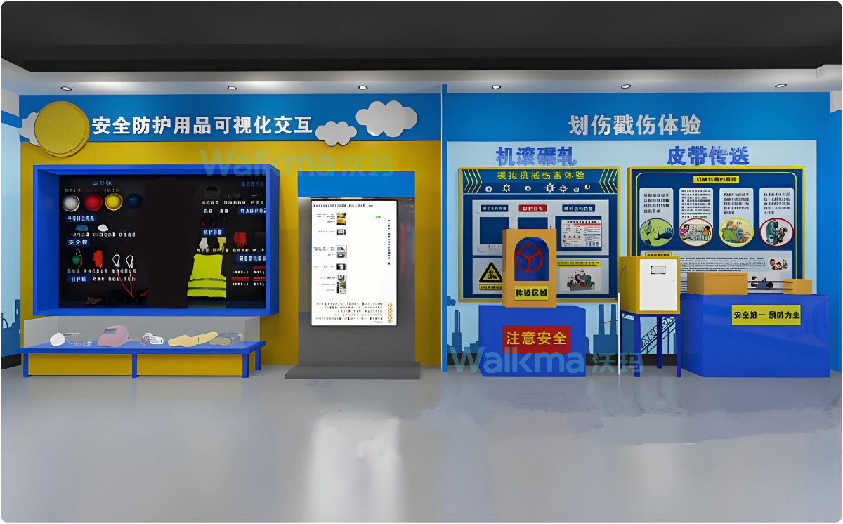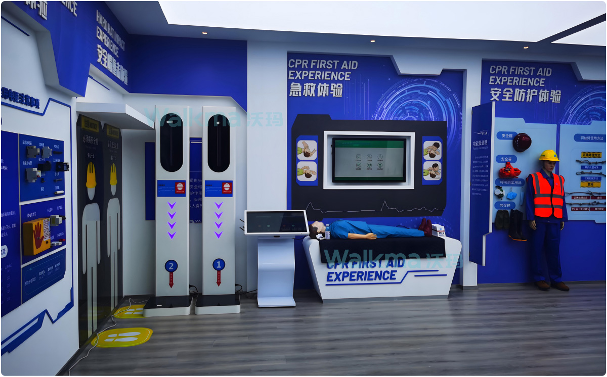 沃玛科普体验馆专业人员飞抵客户现场进行文化墙布置,主题装修,指导装机,安装,调试,技术培训,指导客户单位员工通晓实际使用效果体验